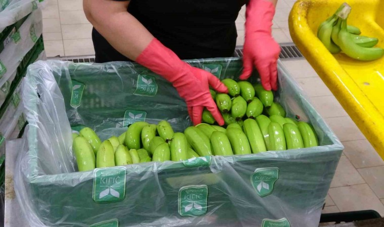 Bu sezonun hasat döneminin başladığını belirten işçiler, kesimden paketlemeye kadar emek verilerek özenli bir şekilde muzları tüketiciye gönderdiklerini söyledi.