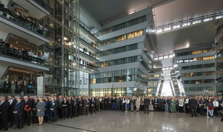Belçika’nın başkenti Brüksel’de 4 Nisan 1949’da kurulan Kuzey Atlantik Antlaşması Örgütünün (NATO) 75. kuruluş yıl dönümü kutlandı. Yıl dönümü çerçevesinde NATO’ya üye devletlerin dışişleri bakanları ve askeri yetkililerin katılımıyla NATO genel merkezinde tören düzenlendi. Bando gösterisi gerçekleştirilen törende NATO Askeri Komite Başkanı Amiral Rob Bauer ve NATO Genel Sekreteri Jens Stoltenberg ile dışişleri bakanlarının konuşmalarının ardından pasta kesildi.