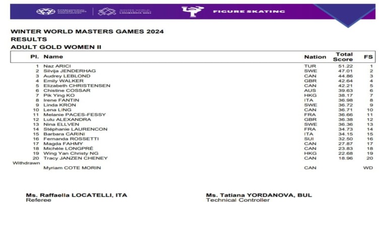 İtalya’da düzenlenen Dünya Masterlar Kış Oyunları’nda artistik buz pateni milli sporcusu Naz Arıcı, Altın Bayanlar kategorisinde dünya şampiyonluğunu kazandı.