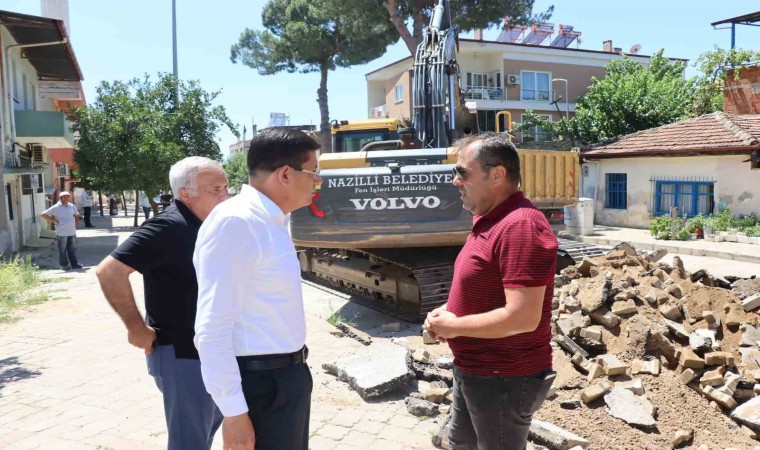 Nazilli Belediye Başkanı Kürşat Engin Özcan, Yeşil Mahalle 374 Sokak ile 735 ve 721 Sokak’ı birbirine bağlayan noktada Fen İşleri Müdürlüğü ekipleri tarafından gerçekleştirilen çalışmaları yerinde inceledi.
