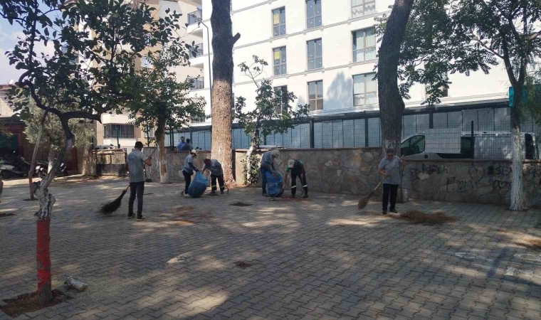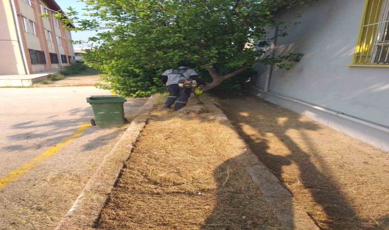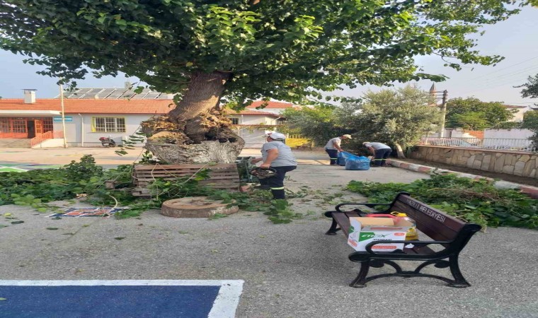 Çim biçme, ağaç budama ve çiçek bakımı gibi işlemlerle dış mekanları ferah bir görünüme kavuşturan ekipler, okul çevresinde biriken atıkları ise titizlikle temizledi.