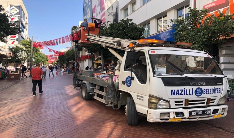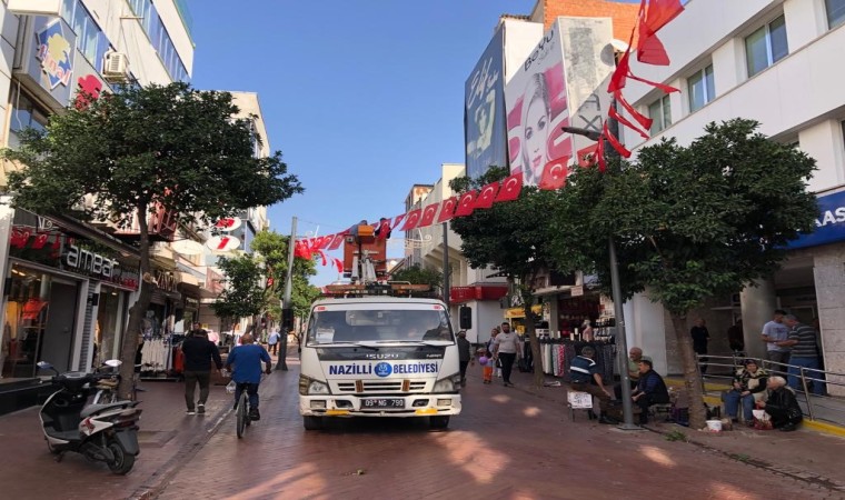 Nazilli Belediyesi ekipleri, 29 Ekim Cumhuriyet Bayramı dolayısıyla şehrin dört bir yanını Türk bayrakları ile donattı.