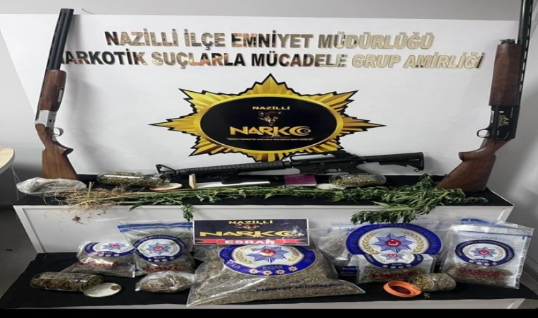 Nazilli Narkotik Suçlarla Mücadele Büro Amirliği ekipleri uyuşturucu ile mücadele çalışmalarına aralıksız devam ediyor. Edinilen bilgiye göre ekipler, ilçe merkezinde 7 adrese eşzamanlı olarak operasyon düzenledi. Operasyonda yüklü miktarda esrar maddesi, tüfek, tabanca , kenevir ve kenevir bitkisi yetiştirme düzeneği ele geçirildi. 2 şahıs uyuşturucu madde ticareti suçundan gözaltına alınırken 5 şahsa uyuşturucu madde kullanmak suçundan adli işlem başlatıldı.