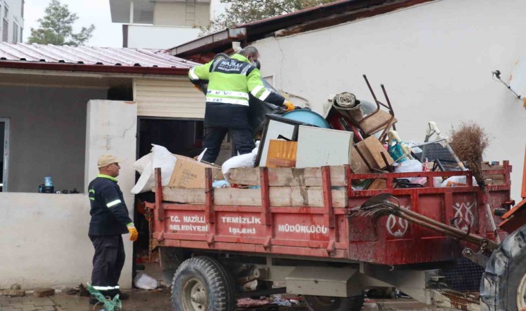 Nazilli Belediyesi ekipleri Zafer Mahallesi 12 sokakta bulunan 68 yaşındaki N.A.’ya ait evde bu sefer büyük temizlik yaptı. Adım atılamayacak kadar atık ve eşya ile dolu evin temizliği tüm gün sürdü. Sabah mesaisi ile başlayan temizlik çalışmasında dışarı çıkarılan çöpler, Nazilli Belediyesine ait kepçe ile kamyonlara yüklendi. Temizlik esnasında kötü koku nedeniyle sıkıntılı anlar yaşayan Temizlik İşleri Müdürlüğü personelleri belirli aralıklarla yaptıkları temizlik çalışması sırasında ev sahibi N.A.’nın sık sık müdahaleleriyle uğraşmak zorunda kaldı. Biriktirdiği çöplerinin atılmasını istemeyen N.A. Zabıta Müdürlüğü personeli ve temizlik işleri müdürlüğü personellerine zor anlar yaşattı.