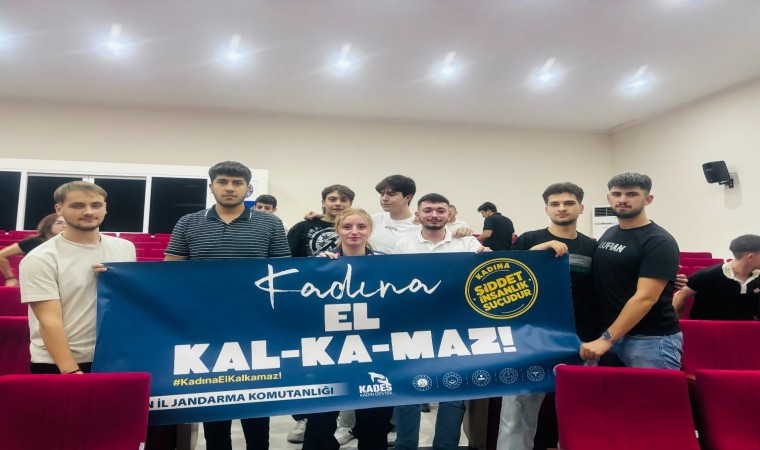 Aydın İl Jandarma Komutanlığı Aile içi Şiddetle Mücadele ve Çocuk Kısım Amirliği ve Siber Suçlarla Mücadele Şube Müdürlüğü ve Nazilli İlçe Jandarma Komutanlığı personellerince Adnan Menderes Üniversitesi Nazilli İktisadi ve İdari Bilimler Fakültesi’nde 2024-2025 eğitim-öğretim yılına yeni başlayan öğrencilerimize yönelik eğitim faaliyeti gerçekleştirildi. Gençlik ve Güvenli Gelecek mottosuyla 6284 Sayılı Kanun, KADES Uygulaması, Erken Yaşta ve Zorla Evlilikler, Siber Zorbalık ve İnternet Üzerinden Dolandırıcılık konularında bilgilendirme faaliyeti gerçekleştirilmiştir. Faaliyette öğrencilerin kendilerini güvende hissetmeleri ve jandarma teşkilatının her zaman yanlarında olduğu mesajı verilerek durumsal farkındalık oluşturmak maksadıyla broşür dağıtılarak pankart açıldı.