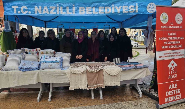 Nazilli Kaymakamlığı Sosyal Yardımlaşma ve Dayanışma Vakfı bünyesinde bulunan ve 2023 yılında kurulan Aile Destek Merkezi (ADEM) ve Sosyal Dayanışma Merkezi’nin (SODAM) açtığı el sanatları ve dikiş kurslarını tamamlayan kursiyerler ürünlerini sergiledi. Kursiyerler emeği geçen başta Kaymakam Kan olmak üzere herkese teşekkür etti. Kursların kendilerini geliştirdiğini ifade eden kursiyerler, öğrendikleri ile ürettikleri el emeği ürünleri sergide satışa sunarak ev ekonomilerine katkı sağladıklarını belirtti.
