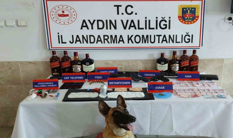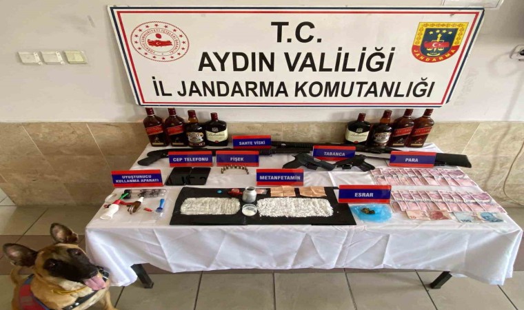 Aydın İl Jandarma Komutanlığı Kaçakçılık ve Organize Suçlarla Mücadele Şube Müdürlüğü ve Nazilli İlçe Jandarma Komutanlığınca uyuşturucu madde imal ve ticareti yapan şahsa yönelik operasyon gerçekleştirildi. Edinilen bilgiye göre Nazilli ilçesinde S.Ç. (34) isimli şahsın iki mahallede bulunan ikameti ve bağ evine baskın yapıldı. Adreslerde yapılan aramalarda 278 gram metamfetamin, 8 gram kubar esrar, 3 parça LSD emdirilmiş pul, 8 adet 1000 cc’lik kaçak viski, 2 adet 9 mm tabanca ve şarjörü, 2 adet yarı otomatik tüfek, suçtan elde edildiği değerlendirilen bir miktar nakit para, 4 adet bong aparatı ele geçirildi. Şüpheli şahıs yakalanarak gözaltına alınırken, hakkında adli işlem başlatıldı.