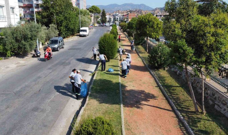 Nazilli’nin yeşil alanlarının tamamında bakım ve temizlik çalışmaları devam ediyor. Nazilli Belediyesi Park ve Bahçeler Müdürlüğü ekipleri, Dereköy Çayı’nın Turan Mahallesi kısmı ile Yeşil Mahalle tarafındaki Şehitler Parkı yürüyüş yolunun bakım ve temizliğini yaptı. Çayın her iki tarafındaki yürüyüş yolları üzerinde kapsamlı temizlik çalışması yapan ekipler kaldırım ve yeşil alanlardaki yabani otları baştan sona temizleyip uzayan çimleri biçti. Süs bitkileri üzerindeki kurumuş dalları da budayan ekipler biçme sonrası çevreye yayılan ot ve çöplerin tamamını tırmık ve süpürgelerle temizledi.