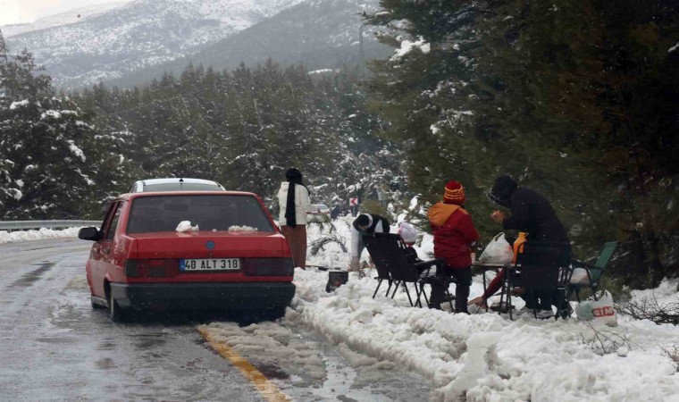 2 bin rakımlı Yılanlı dağına gece boyunca yoğun kar yağışı sonrası yer yer 15-20 santime ulaşan kar yağışı sonrası vatandaşlar günlerden Pazar olması nedeniyle Yılanlı dağına akın etti. Muğla’nın Menteşe ilçesi dışından Marmaris, Ortaca, Dalaman, Köyceğiz, Ula, Yatağan ve Bodrum ilçelerinden de Yılanlı dağına karda piknik yapmak için araçları ile gelen vatandaşlar, kar üzerinde ateş yakarak hem piknik yaptı, hem de kartopu oynadılar.