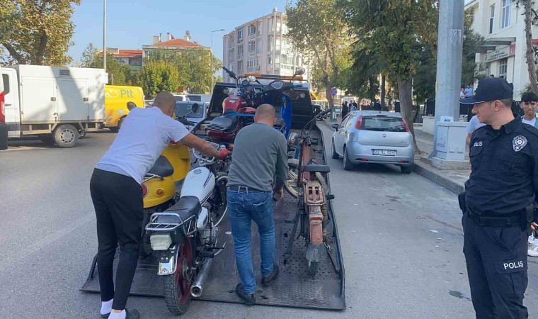 Uzunköprü İlçe Emniyet Müdürlüğü Trafik Tescil ve Denetleme Şubesi ekipleri, şehir merkezinin belirli noktalarında uygulama gerçekleştirdi. Farklı 3 noktada yaklaşık 2 saat süren uygulamalarda 80 motosiklet kontrol edildi. Uygulama noktalarından kaçmaya çalışan sürücüler ise ara sokaklarda bulunan görevli polis ekipleri tarafından yakalanarak tekrar uygulama noktalarına getirildi. Bu çerçevede, yetersiz ehliyet ile motosiklet kullanan, ehliyetsiz motosiklet kullanan, kask takmadan motosiklet kullanan, abartı egzoz takan plakasız motosiklet ile dolaşan ve polisin "dur" ihtarına uymayan motosiklet sürücülerine 130 bin lira trafik para cezası kesildi. Ayrıca 12 motosiklet ise trafikten men edilerek çekici ile yediemin otoparkına çekildi.