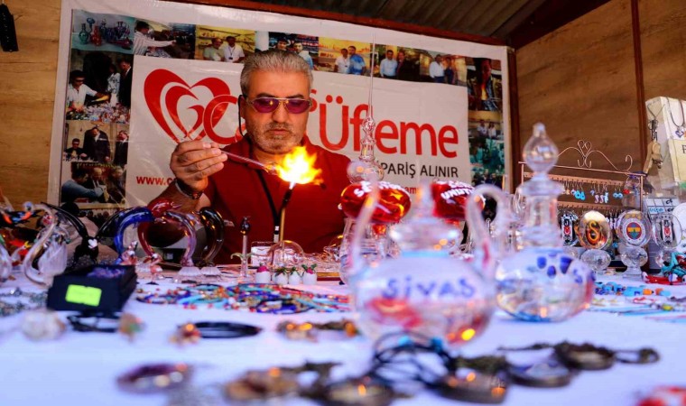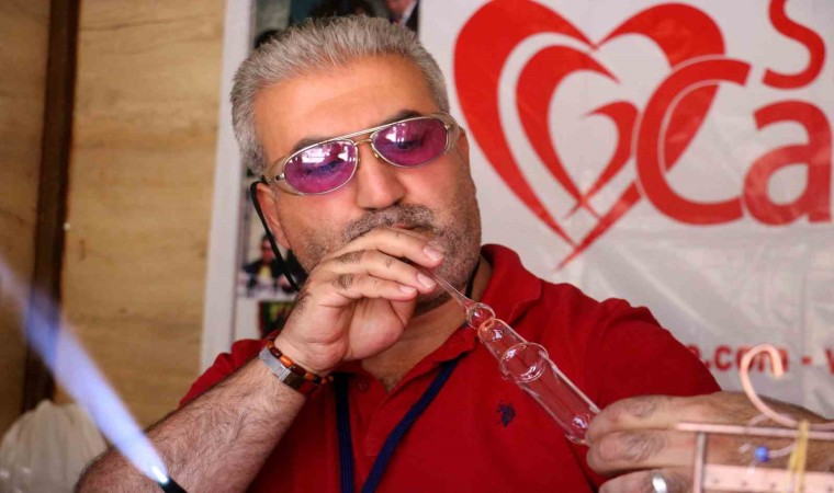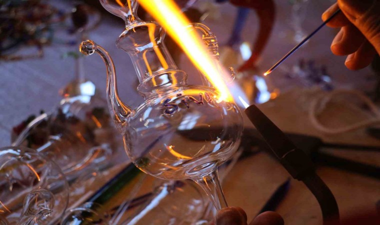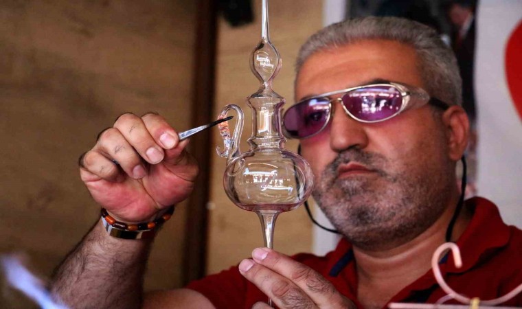Cam üfleme ustası Halil İbrahim Mert, cam üfleme sanatının yurt dışında terapi için kullanıldığından bahsederek, “Biz cam üfleme sanatında burada eski ve geleneksel objeler yapıyoruz. Çeşitli siparişler alıp kişiye özel ürünler yapıyoruz. Ben 25 senedir bu meslekle uğraşıyorum. Babadan oğula giden bir sanat olduğu için burada yaşatmaya çalışıyoruz. Cam sanatı çok farklı, yaparken terapi gören insanlar gibi terapi veriyor. Yurtdışına gittiğimiz fuarlara gelen insanlarda bu sanatı yurtdışında terapi için kullanıldığını söylüyor. Cam yaparken ayrı bir dünyada oluyorum ve ufkunu açacak yollar gösteriyor. Hammadde olarak kullandığımız boruyu üfleyerek şekil veriyoruz, çubuk camlarımda kaynakta ve takı bibloda kullanıyoruz” dedi.