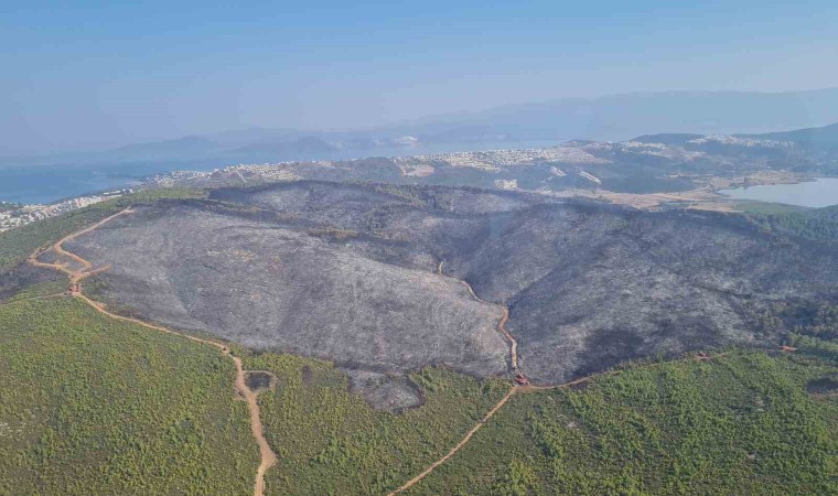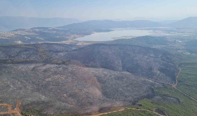 Muğla’nın Milas ilçesi Boğaziçi Mahallesi’nde havadan ve karadan yoğun müdahale ile kontrol altına alınabilen yangının bilançosu havadan görüntülendi. Nefes isimli helikopter ise yangında 72 sorti yaparak rekor kırdı.