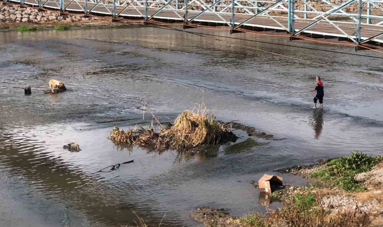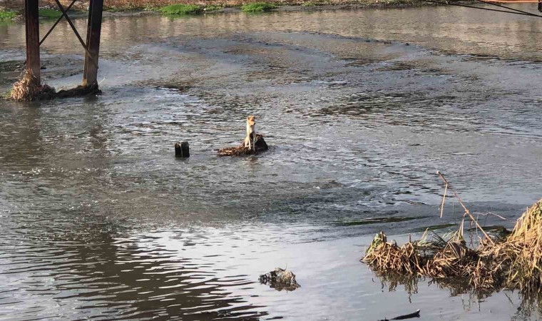Köpeğin mahsur kaldığı noktaya yalın ayak ilerlemeye çalışan Şen, hayvanın suda yüzüp kıyıya çıkmasını sağladı.