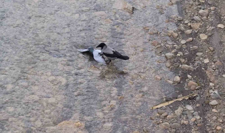 Oltulu vatandaş Beycan Onat, "Yaralı güvercin Oltu Nehri’ne düşmüştü. Kargaların yaralı güvercinin başında olduğunu gördüm. Kargaların yaralı güvercini kurtarmaya çalıştılar. Ancak suda sürüklenen güvercin akıntıya kapılarak boğuldu" diye konuştu.