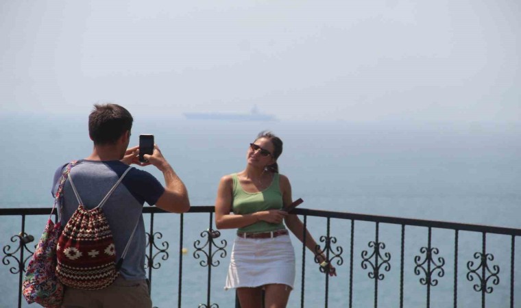 Yaklaşık 1 aydır nemli havanın etkili olduğu Antalya’da sıcaklık 32, deniz suyu sıcaklığının ise 30 derece ölçüldü. Yüzde 75’i aşan nemle birlikte kentte hissedilen sıcaklık etkisi ise bir hayli yükseldi. Sıcaktan ve nemden bunalanlar serinlemek ve deniz keyfi için dünyaca ünlü Konyaaltı Sahili’ni tercih etti. Sahildekilerden bazıları şezlonglara ve kumsala uzanarak güneşlenirken, bazıları ise deniz keyfi yaptı. Denize girmeyen tatilciler ise sahil yakınındaki parklardaki gölgelik alanlarda dinlendi. Körfez açıklarda demirli bulunan ABD Donanması’nın en yeni uçak gemisi USS Gerald R. Ford ve gemide görevli 12. Uçak Gemisi ile Toroslar yüksek nem nedeniyle güçlükle görülebildi. Çok sayıda tatilcinin ise varyantlardan yürüyerek sahile doğru yürüdüğü gözlemlendi.