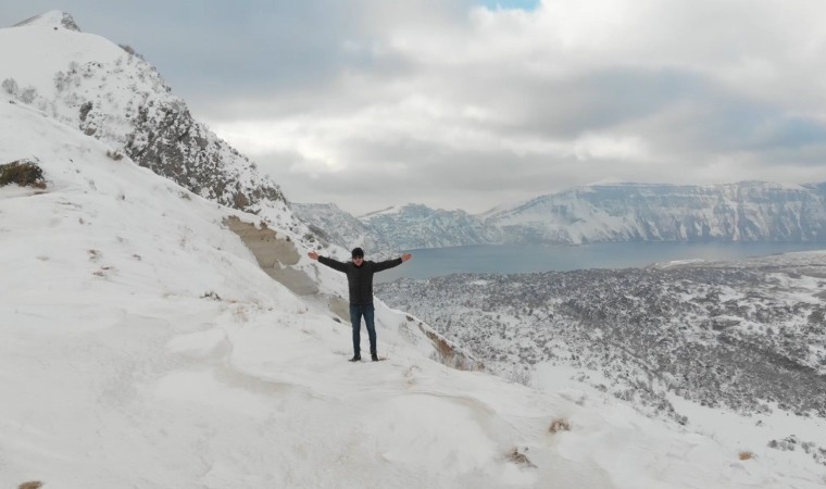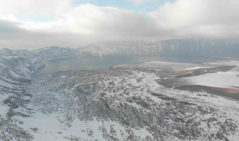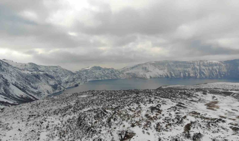 Bitlis ve ilçelerinde son birkaç gündür sağanak yağış şeklinde devam eden yağışlar yüksek kesimlerde yerini yoğun kar yağışına bıraktı. Yağan kar ile birlikte Tatvan ilçesinde bulunan ve her yıl binlerce yerli ve yabancı turist tarafından ziyaret edilen mükemmeliyet ödüllü Nemrut Kalderası da tamamen beyaza büründü. Yazı ayrı kışı ayrı güzel olan 2 bin 250 rakım yükseklikteki Nemrut Kalderası yağan karla adeta ayrı bir güzelliğe büründü. Doğal güzelliği ile her mevsim güzellikler sunan Nemrut’un kış görüntüsü seyrine doyumsuz kartpostallık görüntüler oluşturdu. Dron ile havadan da görüntülenen kaldera sunduğu kış görüntüsüyle kendine hayran bıraktı.