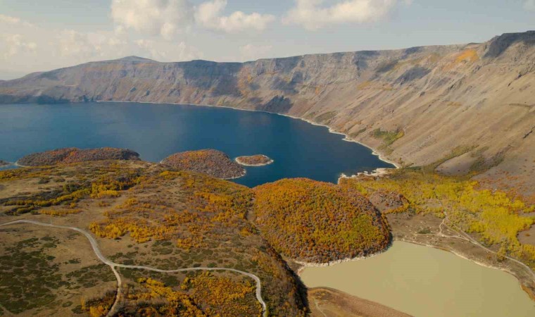 BİTLİS (İHA) – Bitlis’in Tatvan ilçesinde bulunan 2 bin 800 rakımlı Nemrut Kalderası, sonbaharın eşsiz görüntüsüyle görsel şölen oluşturuyor.