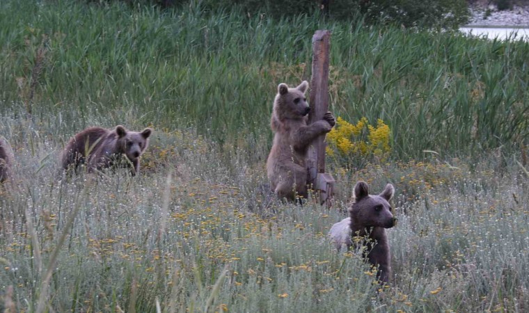 Bitlis’te bulunan 2 bin 948 rakımdaki Nemrut Kalderası’nda yaşayan 4 yavru ayı birlikte görüntülendi.