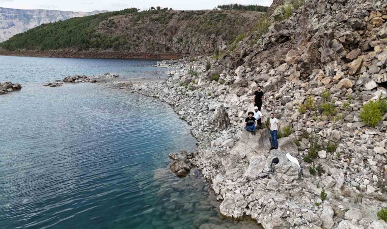 Bitlis’in Tatvan ilçe sınırları içinde bulunan Nemrut Krater Gölü’nü ziyaret eden yerli ve yabancı turistler, masmavi sularda yüzmenin keyfini çıkarıyor.