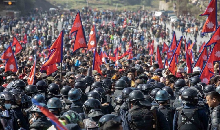 Nepal’de 2008 yılında son verilen monarşinin yeniden tesis edilmesini, anayasadan laiklik ibaresinin çıkarılmasını ve ülkenin yeniden “Hindu Devleti” olmasını isteyen binlerce kişi, başkent Katmandu’ya doğru yürüyüşe geçti. Nepal bayrağı taşıyan ve eski Kral Gyanendra yanlısı slogan atan göstericiler, Katmandu şehir merkezine doğru ilerlemeye çalıştı. Çevik kuvvet polisi ise göstericilere göz yaşartıcı gaz, tazyikli su ve copla müdahale etti. Tansiyon yükselirken, iki tarafta da yaralananlar oldu.