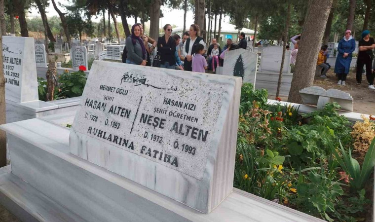 Şehit öğretmen ve babasının mezarının hemen yanı başında geçen yıl bu tarihlerde vefat eden Neşe Alten’in annesi Nazife Alten’in de mezarı bulunuyor.