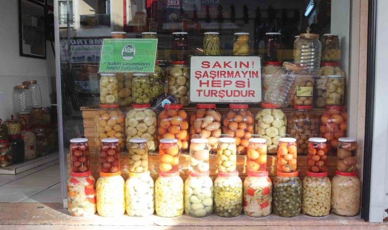 Yenilebilir 90 çeşit turşunun bulunduğunu ifade eden İbrahim Türksever, “Biz yenilebilir sebze ve meyve olarak her şeyin turşusunu yapıyoruz. Erik, kavun, portakal gibi birçok meyve ve sebzeden turşu yapıyoruz. Müşterilerimiz turşularımızı çok seviyor. Çam kozalağının da turşusunu yaptık. Onu da aroma için üretiyoruz ve çok güzel bir aroması var. Hem yaşlı kesim hem genç kesim bizden turşu suyu alıyor” dedi.