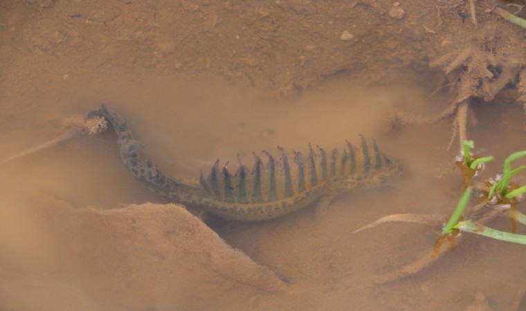 Bursa’da bir vatandaşın dikkati sonucu sulama göletinde nesli tükenmekte olan Anadolu şeritli semenderi ulundu. Semender su içi bitkilerince zengin farklı bir alana taşındı.