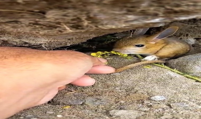 Taşlardan kurtulan Arap tavşanının kaçmaması üzerine hayvana su kapağında su veren ve "Al bu yeşillik ye, sevmiyor musun?" diyerek elleriyle besleyen Muhammet Tutar bu eşsiz görüntüleri cep telefonu kamerasıyla kayıt altına aldı. Taşlardan kurtulmasına rağmen bölgeden ayrılmayan ve kendisini kurtaran Muhammet Tutar’ın kendisini sevmesine izin veren nesli tehlikedeki hayvanın görüntüleri sosyal medyada ilgi çekti.
