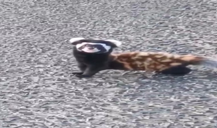 Türkiye’de her yıl yaz dönemlerinde ortaya çıkan ve nesli tükenmekte olan hayvanlar kategorisinde kırmızı listede yer alan ‘Alaca sansar’ Gümüşhane’de görüntülendi.