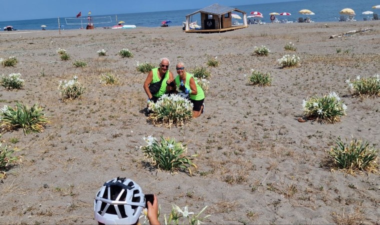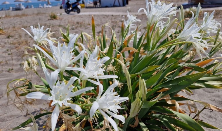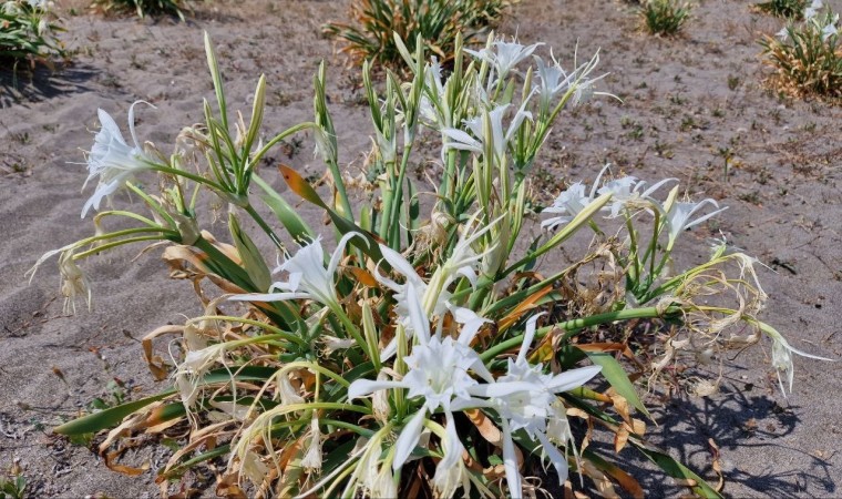 Sakarya’nın Kocaali ilçesinde sahile renk katan ve nesli tükenme tehdidi altında olduğu için koruma altına alınan kum zambakları, görenleri kendine hayran bırakıyor. Yaz aylarının belli dönemlerinde çiçek açan nadide bitkiyi kopartmanın cezası ise adeta dudak uçuklatıyor.