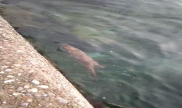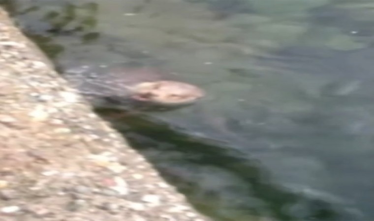Türkiye’de nesli tükenmekte olan yaban hayvanları listesinde yer alan ve bilimsel adı ’lutra lutra’ olan su samuru, Sinop kent merkezinde yüzerken görüntülendi.