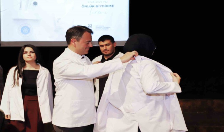 Konuşmanın ardından NEÜ Diş Hekimliği Dekanı Prof. Dr. Ali Rıza Tunçdemir ve akademisyenler, öğrencilere önlüklerini giydirerek başarılar diledi.