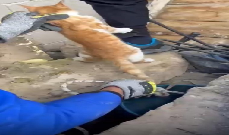 Nevşehir’in Derinkuyu ilçesinde 25 metrelik kuyuya düşen kediyi İl Afet ve Acil Durum Müdürlüğü (AFAD) ekipleri canlı olarak kurtardı.