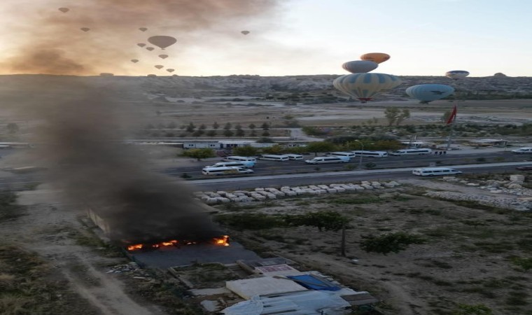 İlçede sabah sabah saatlerinde meydana gelen olayda, bir iş yerinin depo kısmında henüz bilinmeyen bir sebepten dolayı yangın çıktı. Alevler kısa sürede büyürken, ihbar üzerine bölgeye jandarma ve itfaiye ekipleri sevk edildi. Jandarma ekipleri çevrede güvenlik önlemi alırken, itfaiye ekipleri de yangına müdahale etti. Yangının sıcak hava balonlarının kalktığı saate denk gelmesi de panik oluşturdu. Yangınla beraber yükselen siyah dumanlar gökyüzünü kapladı.