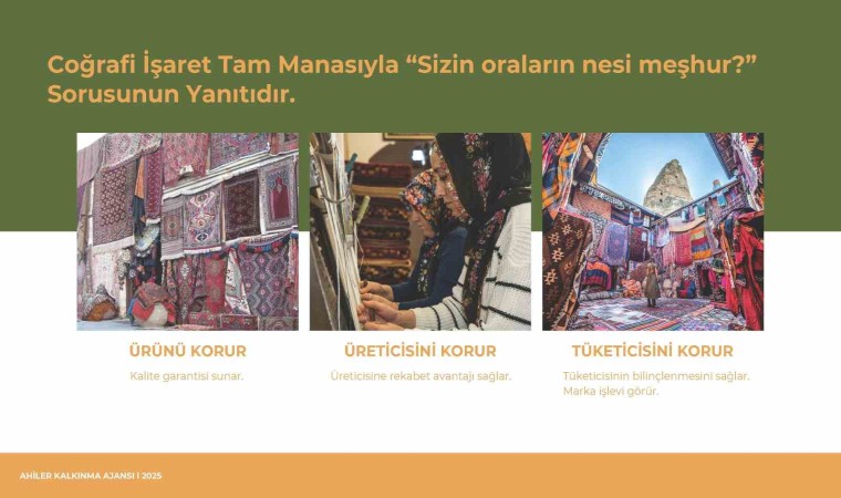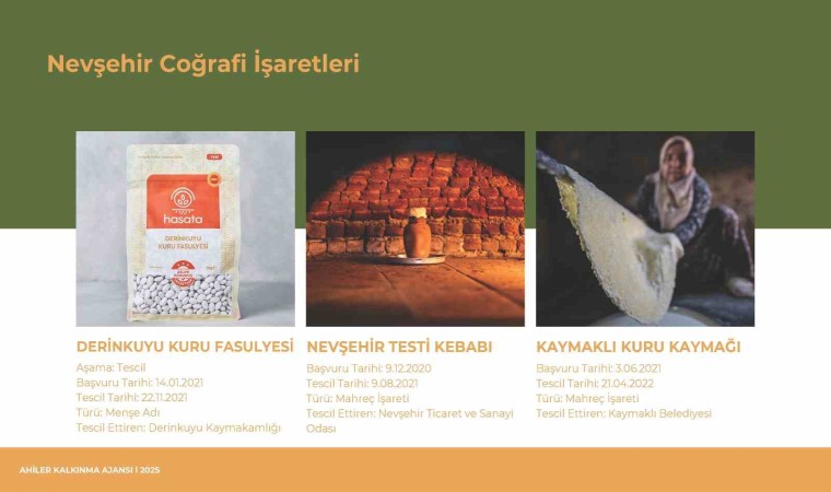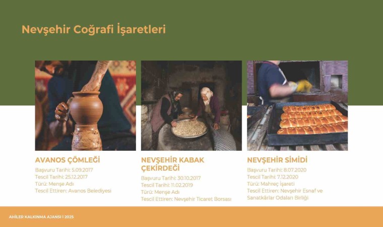 Nevşehir Coğrafi İşaret İl Yürütme Kurulu Ahiler Kalkınma Ajansı koordinasyonunda, coğrafi işaretli ürünlerin Nevşehir’de artırılması ve mevcut potansiyelin değerlendirilmesi için çalışmalarına devam etmektedir. Kurul, ürünleri, üreticileri ve tüketicileri koruyan bu tescil sürecinin yerel kalkınma üzerindeki olumlu etkilerini artırmayı hedeflemektedir. Nevşehir’in sahip olduğu coğrafi işaretli ürünler ve potansiyel değerler, ilin ekonomik kalkınması için stratejik bir fırsat sunarken, aynı zamanda geleneksel kültürün korunması ve bölgenin tanıtımı açısından da büyük önem taşımaktadır."