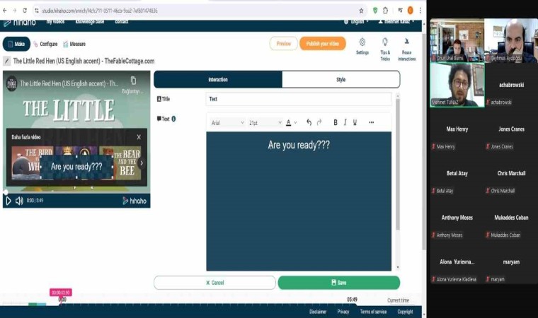 ’Interactive language classes through interactive videos: Kapwing, Hihaho, Rask’ başlıklı eğitime; Dr. Öğr. Üyesi Mehmet Tunaz ve Doç. Dr. Şeyhmus Aydoğdu, öğretmenler ve akademisyenler katıldı. Kapadokya Bölgesi’nin ve NEVÜ’nün tanıtımının da yapıldığı eğitimimin amacını, yabancı dil eğitiminde sınıf içi etkileşimli (interaktif) video hazırlama ve uygulama olduğunu belirten NEVÜ öğretim üyeleri, bu konu kapsamında günümüz eğitim modellerine teknolojinin doğru entegre edilmesinin önemini de vurguladı.