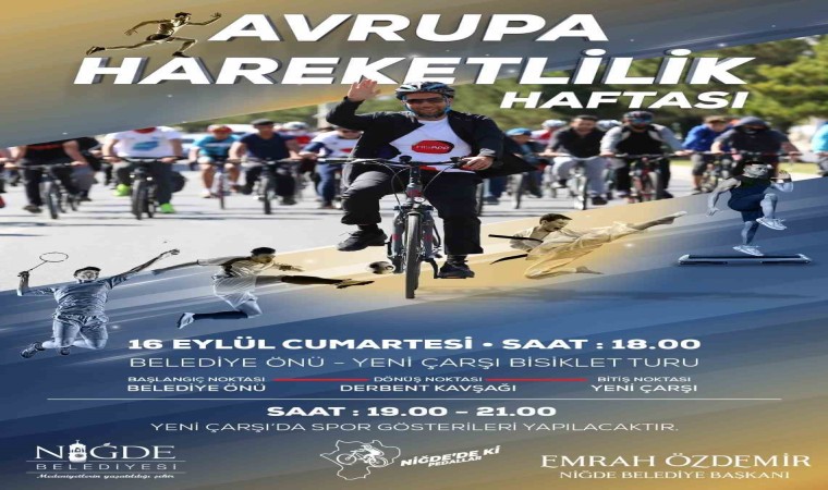 Niğde Belediyesi, Avrupa Hareketlilik Haftası kapsamında kent merkezinde çeşitli etkinlikler düzenleyerek hareketliliği teşvik edecek. Etkinlikler, 16 Eylül'de Niğde Belediye binası önünden başlayacak bir bisiklet turu ile başlayacak ve Yeni Çarşı'da Gençlik ve Spor İl Müdürlüğü tarafından farklı spor dallarında gösteriler sunulacak.