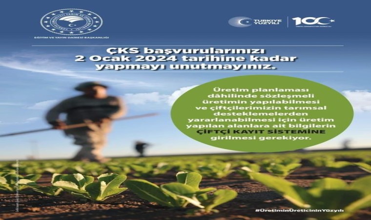 Niğde İl Tarım Ve Orman Müdürlüğü tarafından yapılan açıklamada; ‘’Tarımsal üretim planlaması dahilinde sözleşmeli üretim yapılabilmesi ve tarımsal desteklemelerinden yararlanılabilmesi için 2 Ocak 2024 tarihine kadar Çiftçi Kayıt Sistemi başvurunuzu yapmayı unutmayın. Türkiye Yüzyılı Üretimin Yüzyılı olacak" ifadelerine yer verildi.