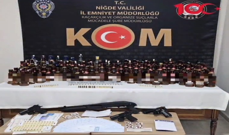Niğde İl Emniyet Müdürlüğü ekipleri tefecilik suçuna yönelik yürüttüğü çalışmalar kapsamında eş zamanlı operasyon düzenledi. Düzenlenen operasyonda 10 kişi gözaltına alınırken, şüphelilere ait iş yerlerinde yapılan aramada ise 3 adet ruhsatsız tabanca, 1 adet ruhsatsız tüfek 57 adet mermi, 66 adet senet, 140 bin meblağlı çek, 33 adet uyuşturucu madde içeren hap, 222 adet sahte bandrol ve 136 şişe kaçak içki ele geçirildi. Emniyetteki işlemlerin ardından adliyeye sevk edilen 10 şüpheliden 6’sı çıkarıldığı mahkeme tarafından tutuklanırken, 1 şüpheli adli kontrol şartıyla serbest kaldı. 3 şüpheli ise emniyetteki sorgusunun ardından serbest bırakıldı.