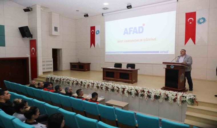 Niğde Ömer Halisdemir Üniversitesi güvenlik personeline AFAD tarafından deprem anında ve sonrasında neler yapılması gerektiği hakkında eğitim verildi.