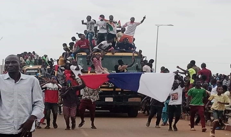 ECOWAS’ın Nijer krizini tartışmak üzere dün Gana’nın başkenti Akra’da bir araya geleceği haberinin ardından yüzlerce darbe destekçisi başkent Niamey’de toplandı. Niamey’in yakınlarındaki Fransız askeri üssünün çevresinde oluşturulan Batı Afrika bloğuna karşı çıkan protestocular, “Kahrolsun Fransa”, “Kahrolsun ECOWAS” sloganları atarak tepki gösterdi. Birçok protestocu Rus ve Nijer bayrakları sallarken, ülkenin yeni lideri General Abdourahmane Tchiani’ye desteklerini belirten sloganlar attı.