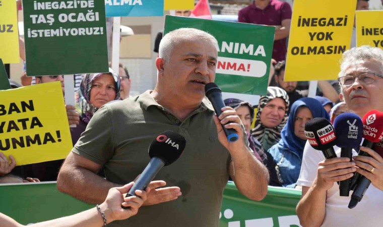 Yapılacak olan taş ocağının sadece İnegazi için değil tüm Nilüfer’e zarar vereceğini söyleyen Nilüfer Belediyesi Başkanvekili Salih Güleç, “Bastonu dikseniz yeşerecek olan bu velinimet toprakların evladı olarak İnegazi Mahallesine yapılması planlanan taş ocağına kararlılıkla karşı çıkıyoruz. Neredeyse her yıl ısrarla karşımıza çıkartılan bu yıkım projesine karşı durmak hepimizin boynuna borçtur. Bu projenin hayata geçmesi demek, burada dinamitlerin patlaması, çevrenin toz bulutlarına esir edilmesi, su kaynaklarımızın yok edilmesi, tarım arazilerimizin verimliliğinin yerle bir olması demektir. Bu cennet coğrafyada yapılmak istenen taş ocağı sadece İnegazi için değil, tüm Nilüfer için bir yıkım olacaktır. Biz Nilüferliler burada sistematik olarak gündeme getirilen bu projeye geçit vermeyeceğiz. Tarım arazilerimizi, su kaynaklarımızı birilerinin bitmek tükenmek bilmez para hırsına kurban vermeyeceğiz. Bizler son nefesimize kadar dimdik buradayız. Köyümüze, kaynaklarımıza, arazilerimize, sularımıza sonuna kadar sahip çıkıyoruz. Çıkmaya da devam edeceğiz” şeklinde konuştu.
