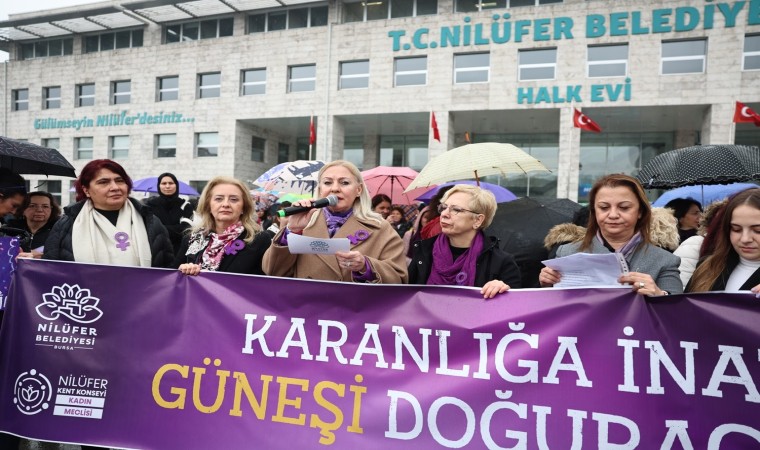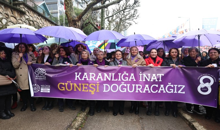 Nilüfer Belediyesi, Nilüfer Kent Konseyi ve Nilüfer Kadın Meclisi’nin, 8 Mart Dünya Emekçi Kadınlar Günü’nde ‘Karanlığa İnat Güneşi Doğuracağız’ sloganıyla organize ettiği etkinlikte, yüzlerce kadın yağmura aldırmadan sloganlar eşliğinde yürüdü.