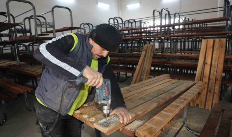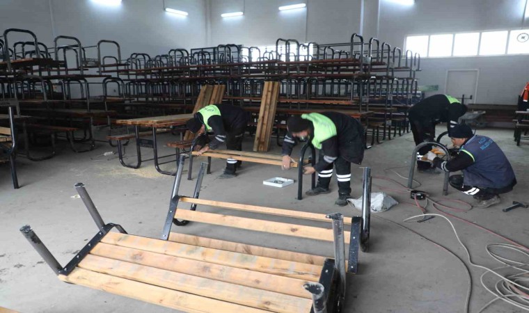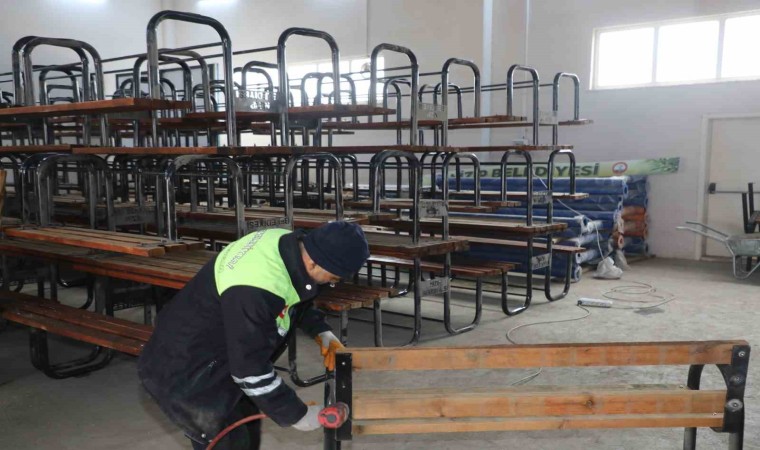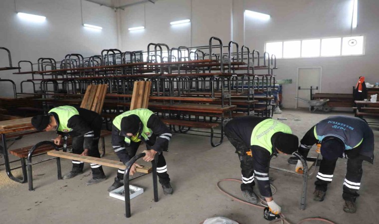 Eskiyen banklar ve oturma grupları, Nizip Belediyesi Geri Dönüşüm Atölyesi’nde yeniden hayat buluyor.