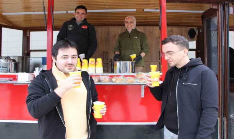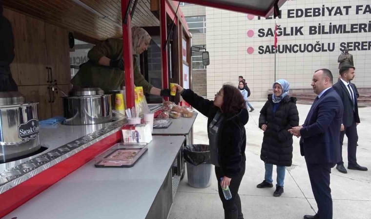 Sabah erkenden üniversitenin yolunu tutan öğrenciler de soğuk günlerde içlerini ısıtan ücretsiz çorba uygulamasını hayata geçiren Belediye Başkanı Sevindi’ye teşekkür etti.