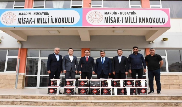 Mardin’in Nusaybin ilçesinde merkezi ve kırsal mahallelerde kullanılmak üzere İlçe Milli Eğitim Müdürlüğüne boya desteği yapıldı.