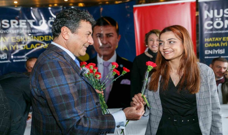 Yaman Otel Gişe Antakya Restoran’da 40’ı aşkın basın mensubunun katılımıyla gerçekleştirilen toplantıda İYİ Parti Hatay Büyükşehir Belediye Başkan Adayı Nusret Cömert, kadın gazetecilerin 8 Mart Dünya Kadınlar Günü’nü kutlayıp, çiçekler hediye etti.