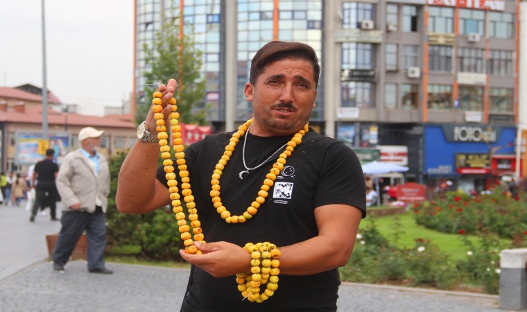 Mevsiminin gelmesiyle doğada kendiliğinden yetişen alıç meyvesi tezgahlardaki yerini aldı. Tespih gibi ipe dizilerek satılan alıç kolyeleri çocukların da boynunda süs oldu. Yaz aylarında su sattığını, mevsimin değişmesiyle alıç satmaya başladığını söyleyen Seyit Ecer, “Köylere gidiyorum, ağaçtan topluyorum. Çok doğal. Sonra tek tek ipe takıyorum. Geçen senelerde 30 liraya satıyordum. Ama günümüzde yakıt masrafları arttı. Şimdi 50 liraya satıyorum. Toplaması da bayağı zahmetli. Gören ‘Ya bunu toplamakta ne var dağda kendiliğinden büyüyen bir meyve. Niye bu kadar pahalı?’ diyorlar. Fakat çalıların arasında tek tek toplamak gerçekten çok zor” ifadelerini kullandı.