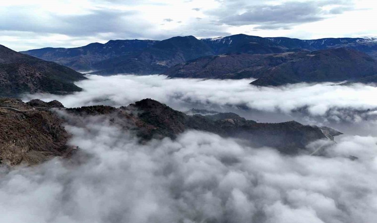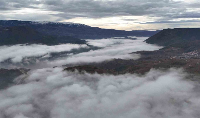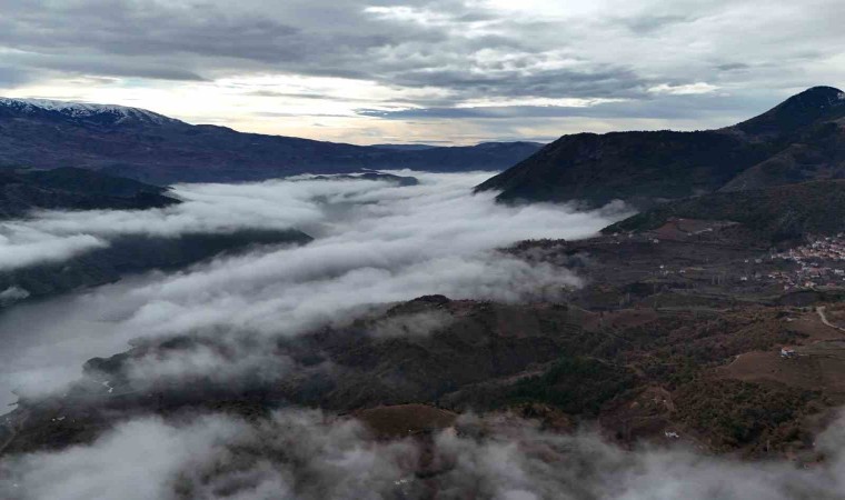 Çorum’un Oğuzlar ilçesindeki Obruk Barajı’nı kaplayan sis, ortaya kartpostallık görüntüler çıkarttı.