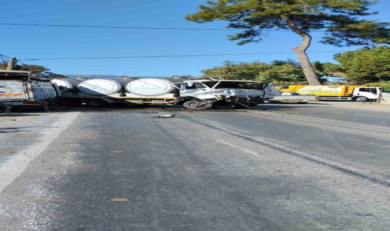 İzmir’in Ödemiş ilçesinde süt toplama kanyonu ile karşı yönden gelen bir başka kamyonun kafa kafaya çarpışması sonucu 2 sürücü de yaralandı.